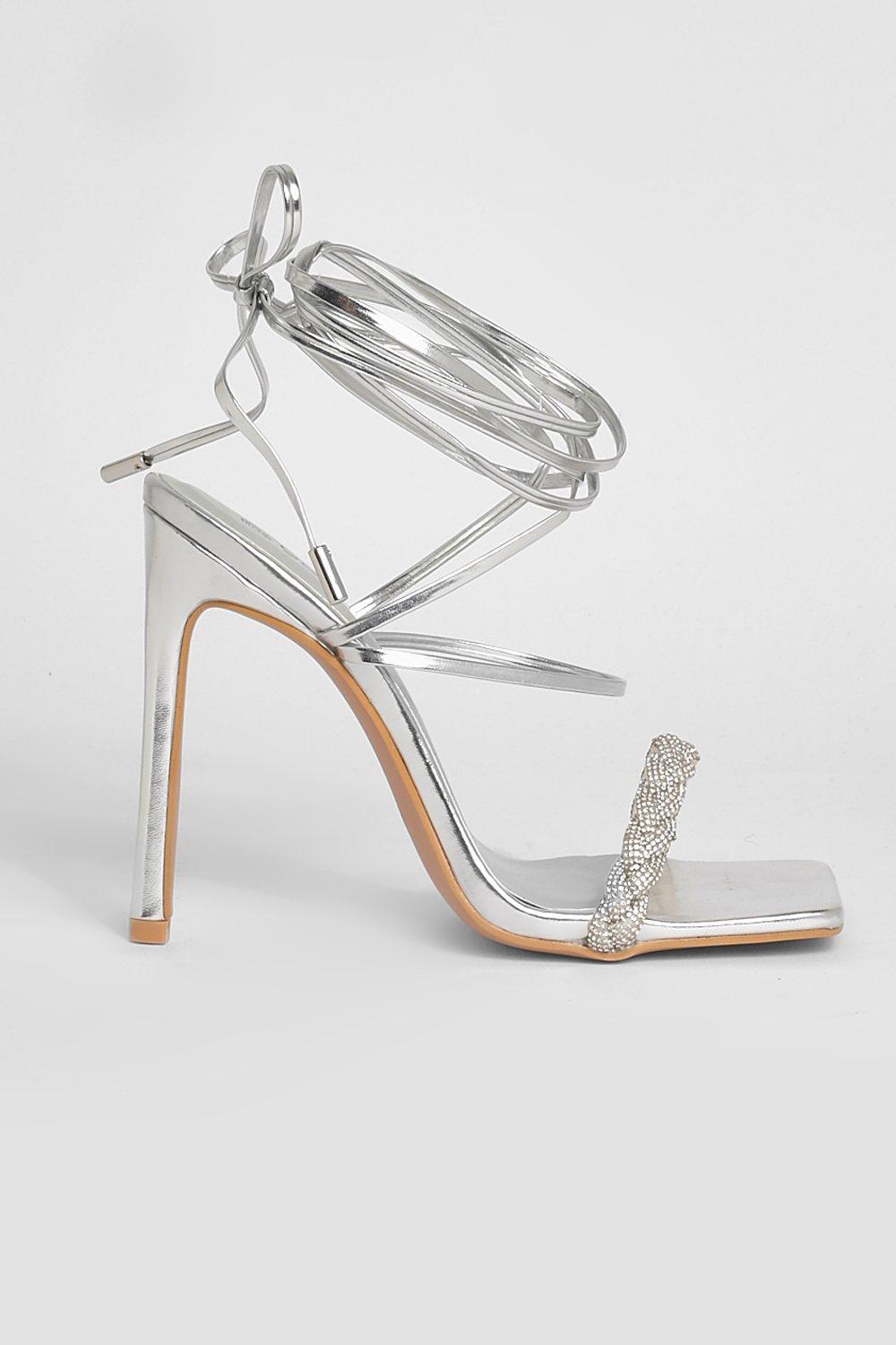 Product Item: Silver diamante wrap sale strap high heeled sandal